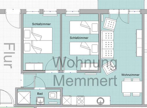 Die Ferienwohnung Memmert im Erdgeschoss unseres Haupthauses hat einen schönen Blick auf unseren Innenhof und bietet Platz für 4 Personen. Sie hat einen Wohnraum/Küche mit Terrasse zum Innenhof, ein Badezimmer und 2 Schlafzimmer. Keine Haustiere erlaubt.